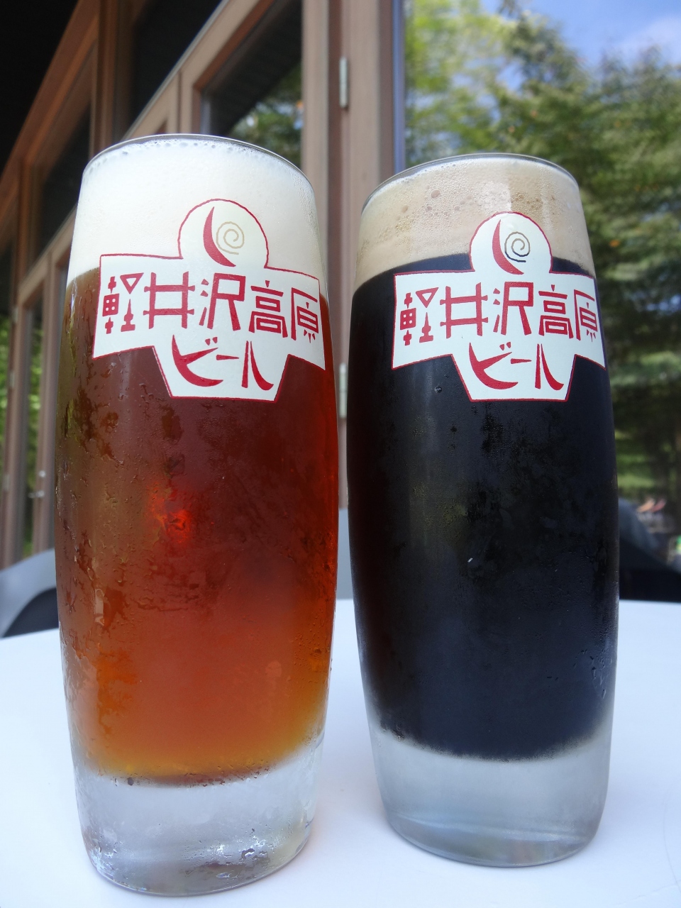 外のテーブルで軽井沢高原ビールを美味しくいただけます。