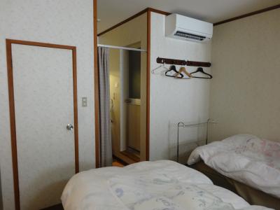 ユニットバスでクロゼットはなし。ハンガーラック下の棚が何気に便利だった。