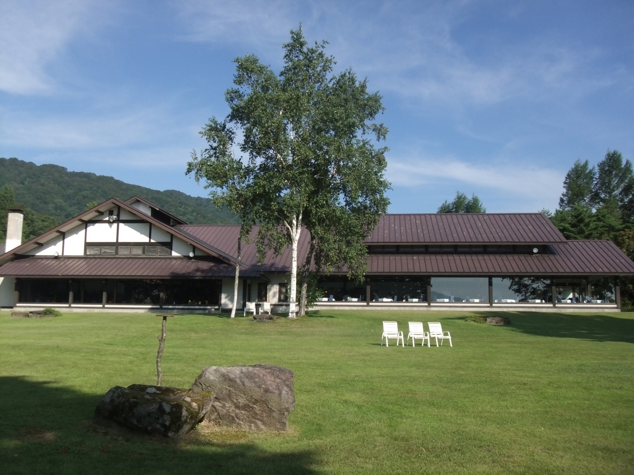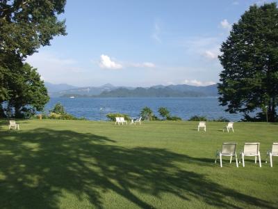 ですが、目の前に広がる広い芝生、その向こうに見える湖面、その芝生を見ながら食べられるフレンチ、露天風呂と、その古さを補って余りある素敵なホテルでした。