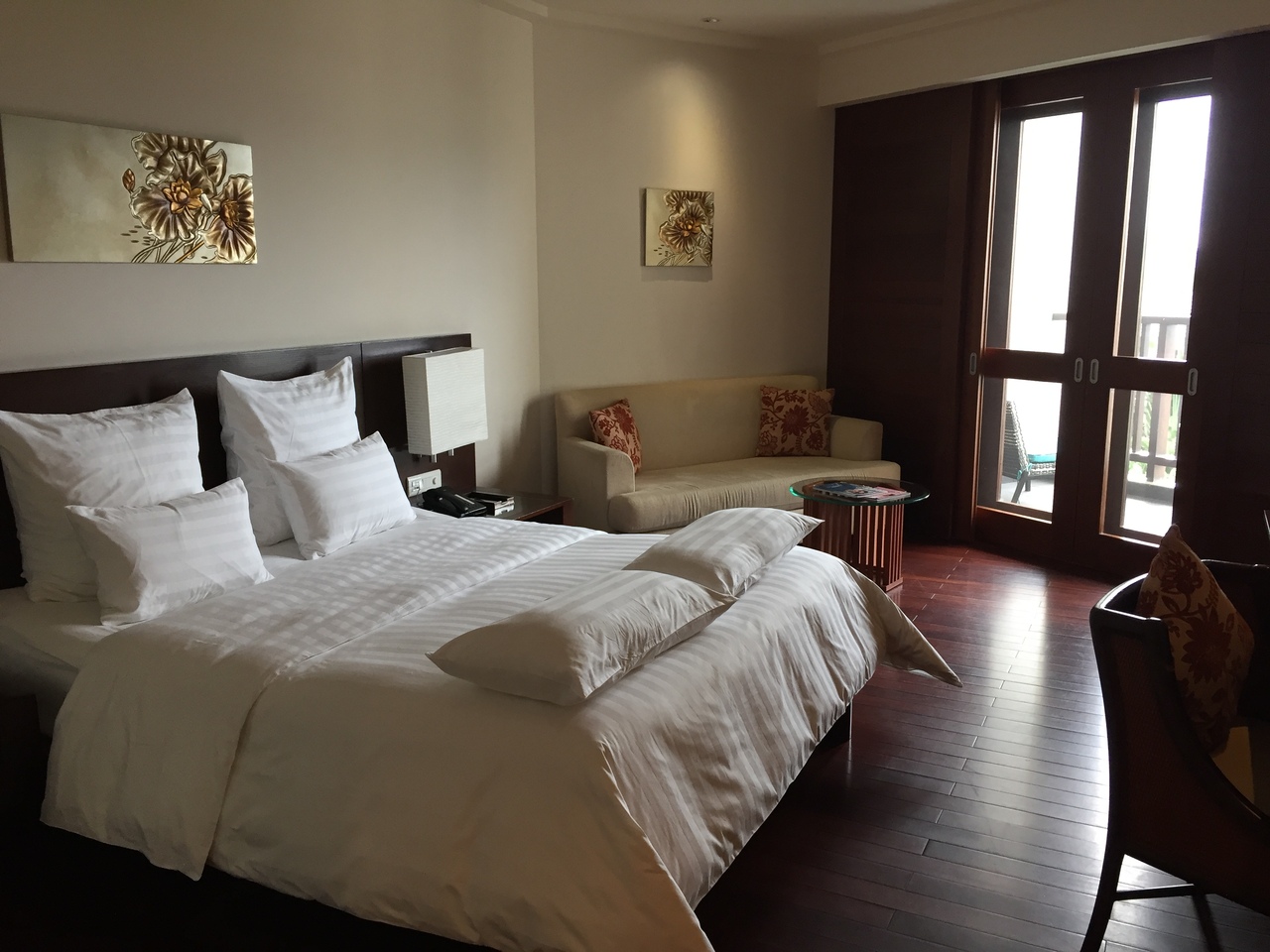 ホイアンの中規模ホテルから移動したらさすがの5つ星という風格ですが最高級というクラスでもない。デラックスルームにしましたが壁が薄く隣の部屋や廊下の声がはっきり聴こえて驚きました。