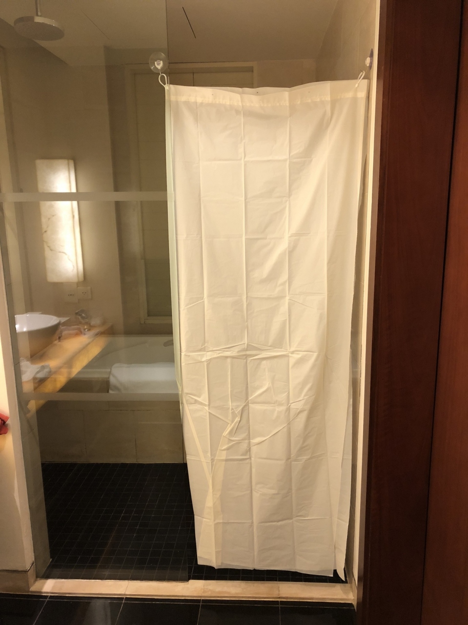 お風呂のお湯を抜いたら下から漏水し部屋までビチョビチョになりました。修理をしてくれましたが部屋の変更のオファーはなく残り1日濡れているエリアを避けて過ごすのが少し不便でした。