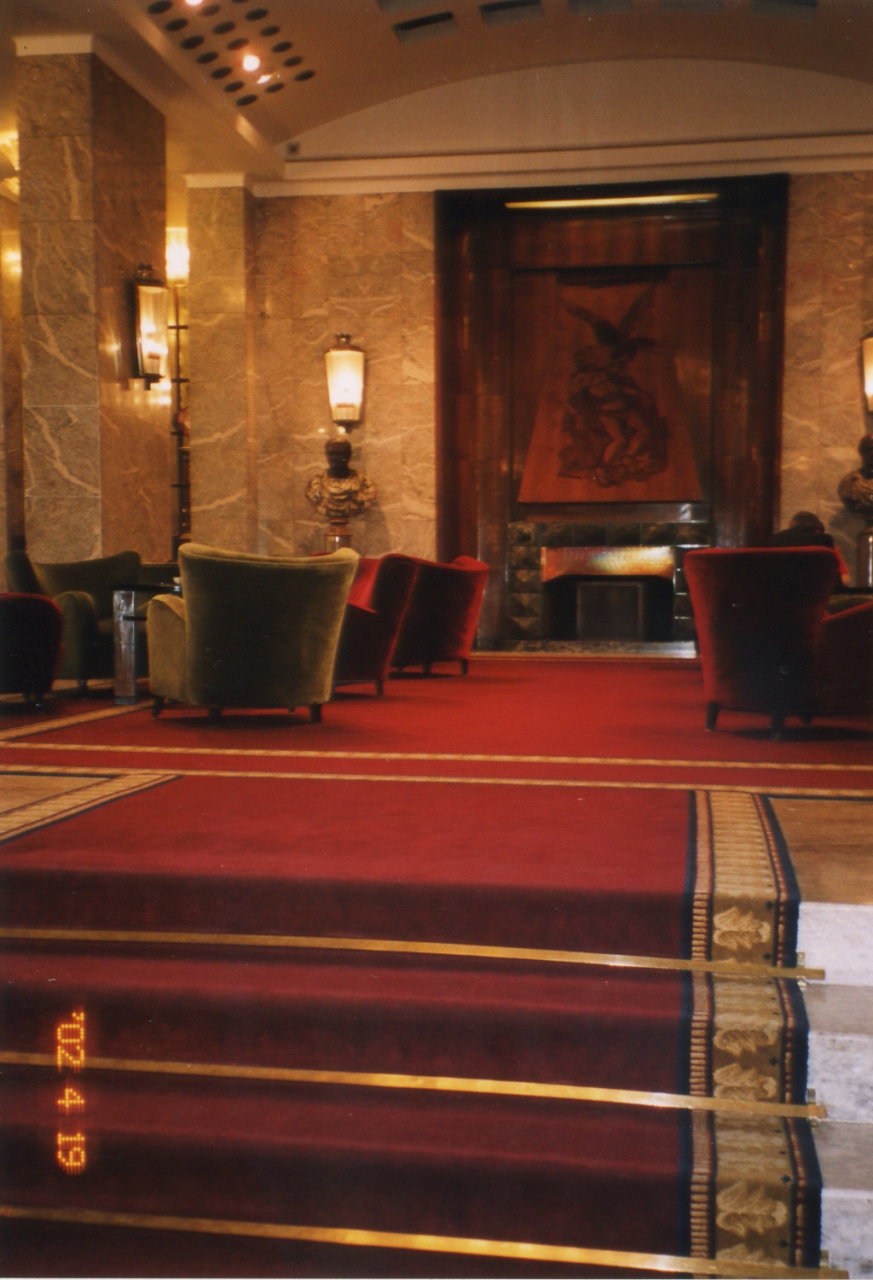 ロビーはじゅうたんやソファーなど落ち着いた雰囲気。