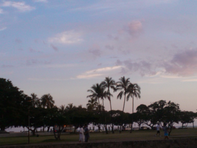 夕暮れ時のアラモアナビーチパークも素敵です。