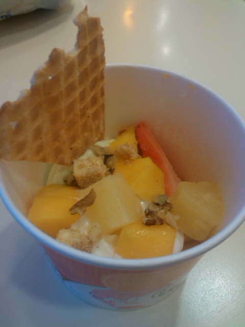 そこにマンゴやパイナップルなどハワイの美味しいフルーツをトッピングするのが大好きです!