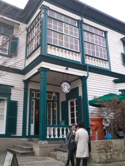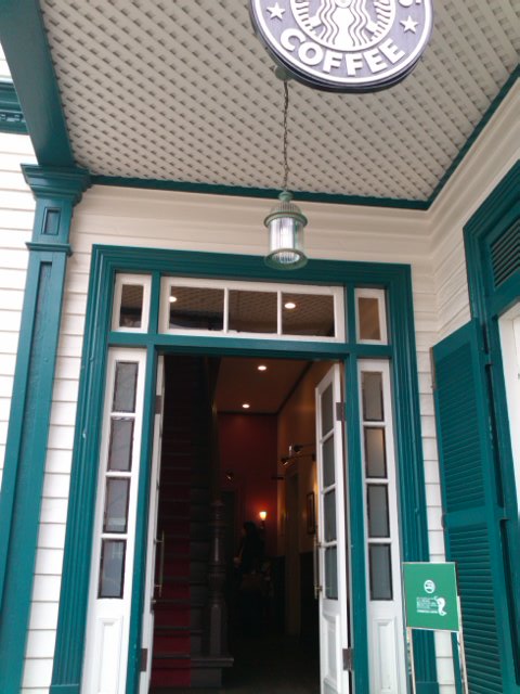 白と緑の奇麗な洋館で、スタバマークも溶け込み待ちの雰囲気にきれいに溶け込んでいました。