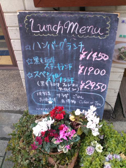 ランチはハンバーグランチ1450円、黒毛和牛ステーキ1900円、スペシャルステーキ2950円です。