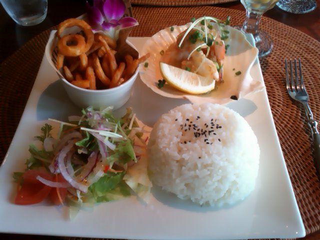 ランチにて利用。ガーリックシュリンプとふりふりチキンセットを注文。
