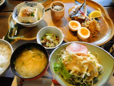 ご飯・味噌汁・冷や奴・納豆・サラダ・ゆで卵・干物等で,可も不可もなくです。新鮮でおいしかったです。
