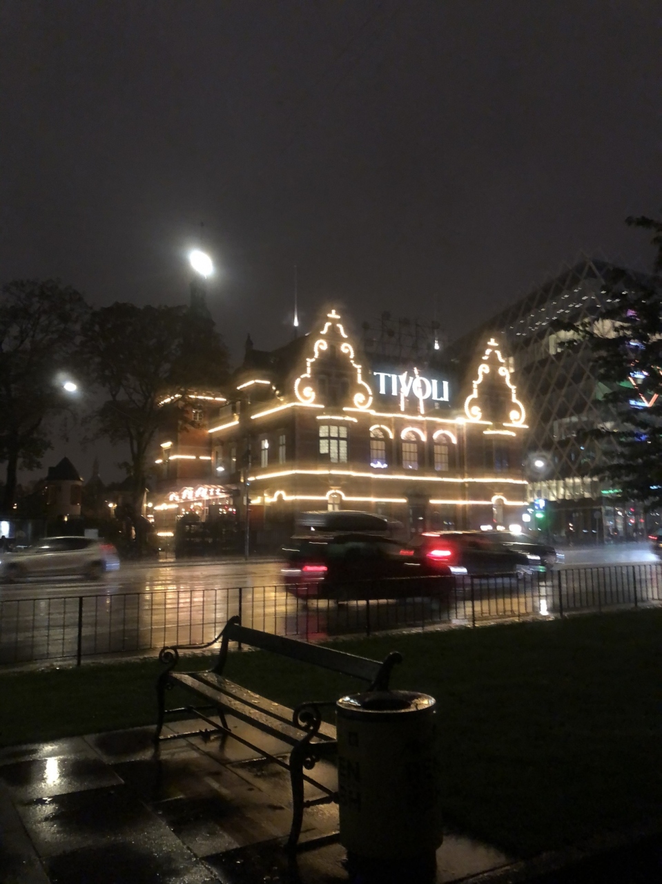 かわいらしくて趣のある建物です。正面にチボリ公園があります。カストラップ空港から15分くらいで着きます。中央くらいに道路が高架になって上を跨いで走ってます。そこからも下って駅に入れます。またその線路沿いにバス停があり、遠方までいきます。