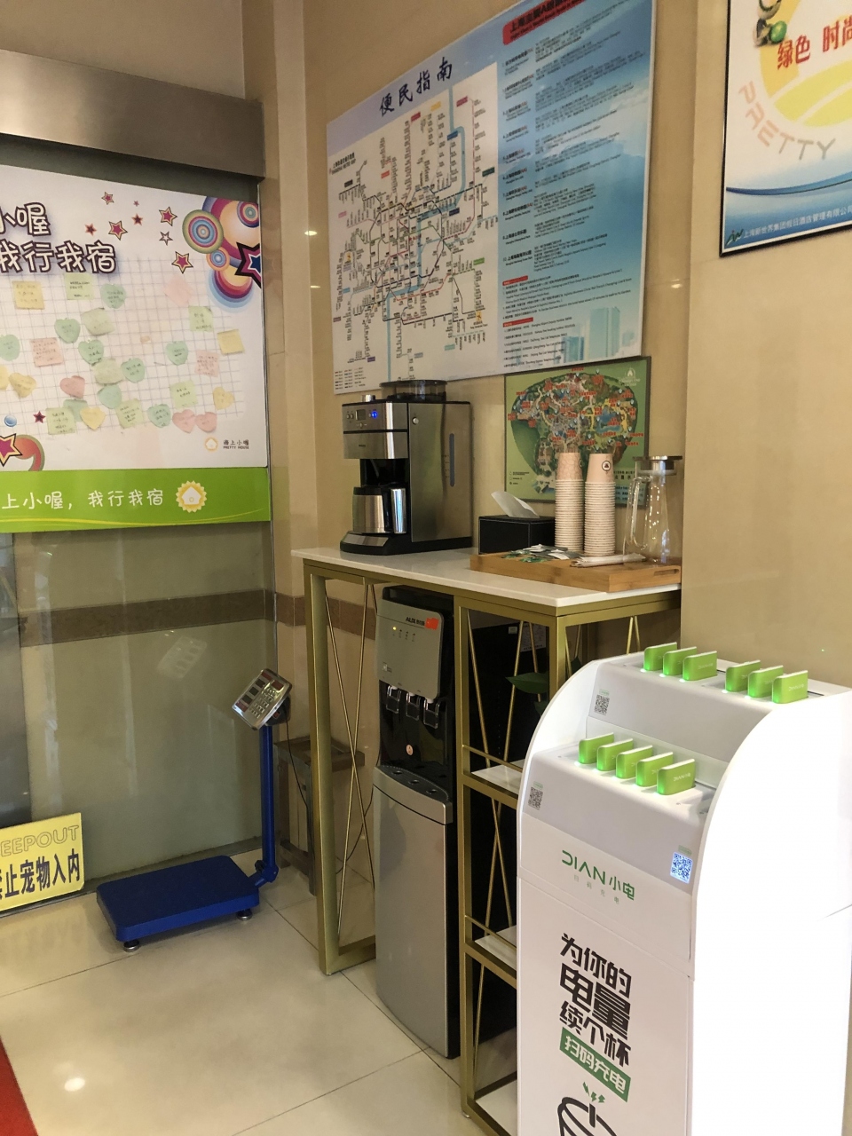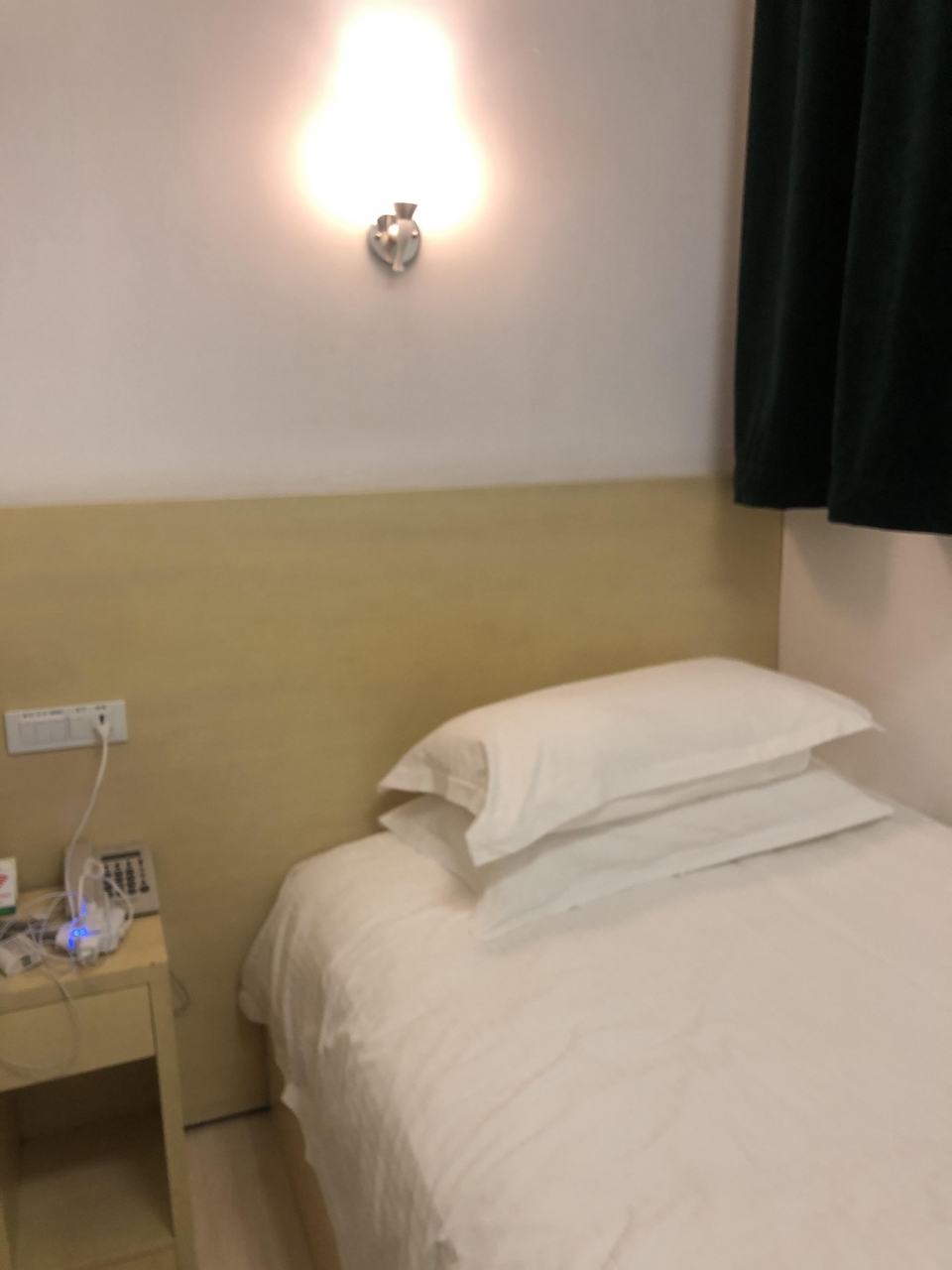 エアポートバスのバス停から徒歩で2.3分程度。ホテルのヘアは狭いですが、一人で寝るだけなら十分です。4泊しましたが、毎日掃除とシーツ替えと日本なら当然の事はしてくれています。(過去にヨーロッパのホテルではしてくれなかったところがあった)毎日ミネラルウオーターが1本ついてきます。共有の場所に電子レンジがあり、ヘアにはポットとドライヤーがあります。一つ残念なのは、1階のヘアなので窓はありますが、横の建物の洗濯物が干してあり窓から見えることでしょうか?でもそれも現地の下町の雰囲気を経験できてよし。一番近い駅が大世界で徒歩5分。人民広場まで徒歩で行けるし、豫園までも歩いていけます。ラグジュアリーなホテルを求める人には適さないですが、コストを下げて寝るだけと割り切るなら十分すぎるホテルです。(ラブホテル感はあります)どうしてかって?フロント前にゴムの自動販売機があるからです。4泊しましたが、周りの雑音は全くなく夜は静かでした。