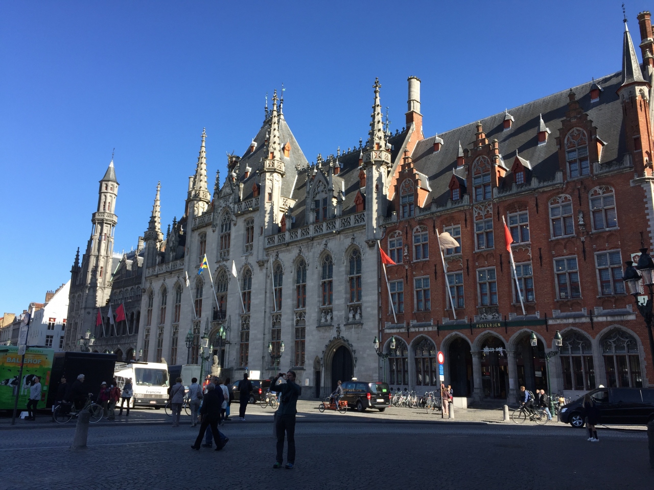 パリピラミッド通りからバス6時45分集合早朝7時半くらい出発かな?11時半くらいに着。30分くらいガイドさんと聖母教会、ベギン会修道院、ブルグ広場、マルトク広場を案内してもらい自由行動。
