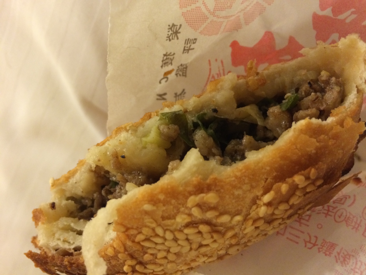 皮はカリッとしていて、中は肉汁たっぷりの具がいっぱい詰まっています。