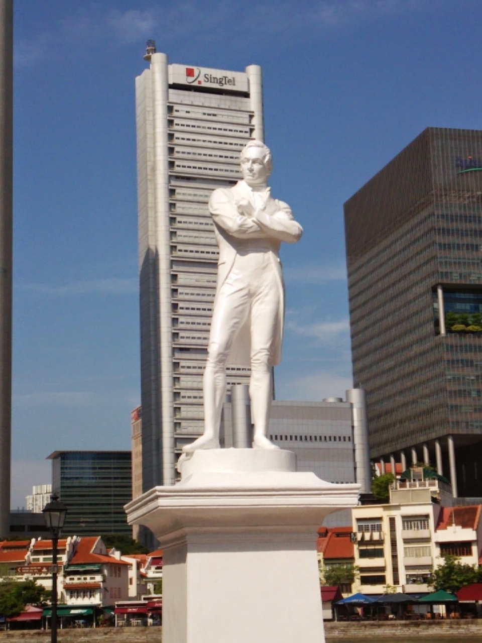 ラッフルズさんの後ろには、シンガポールで一番高いビルも見えるんですね。