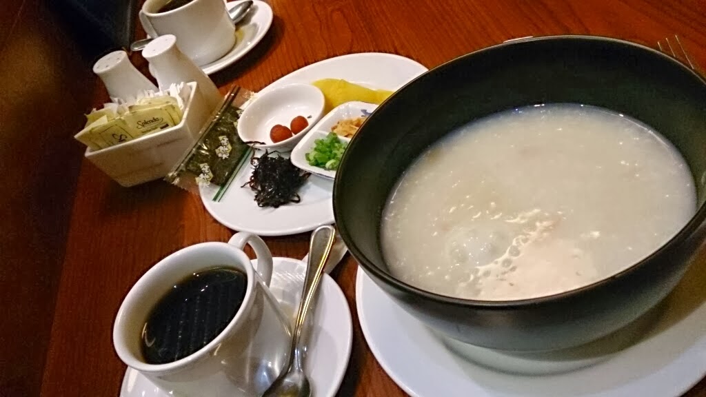 おかゆはしっかり塩味がついてます。8ドルだったかな?おしんこセットのたくあんがデカいですw