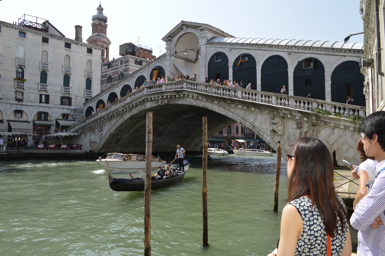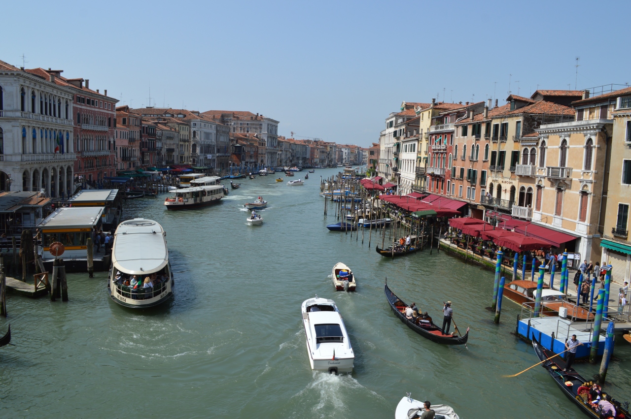 レアルト橋から見る大運河は、最もベネチアらしい風景ではないでしょうか。ボヴァレットやゴンドラ等多くの船が行き交い、大運河が狭く感じられるほど。