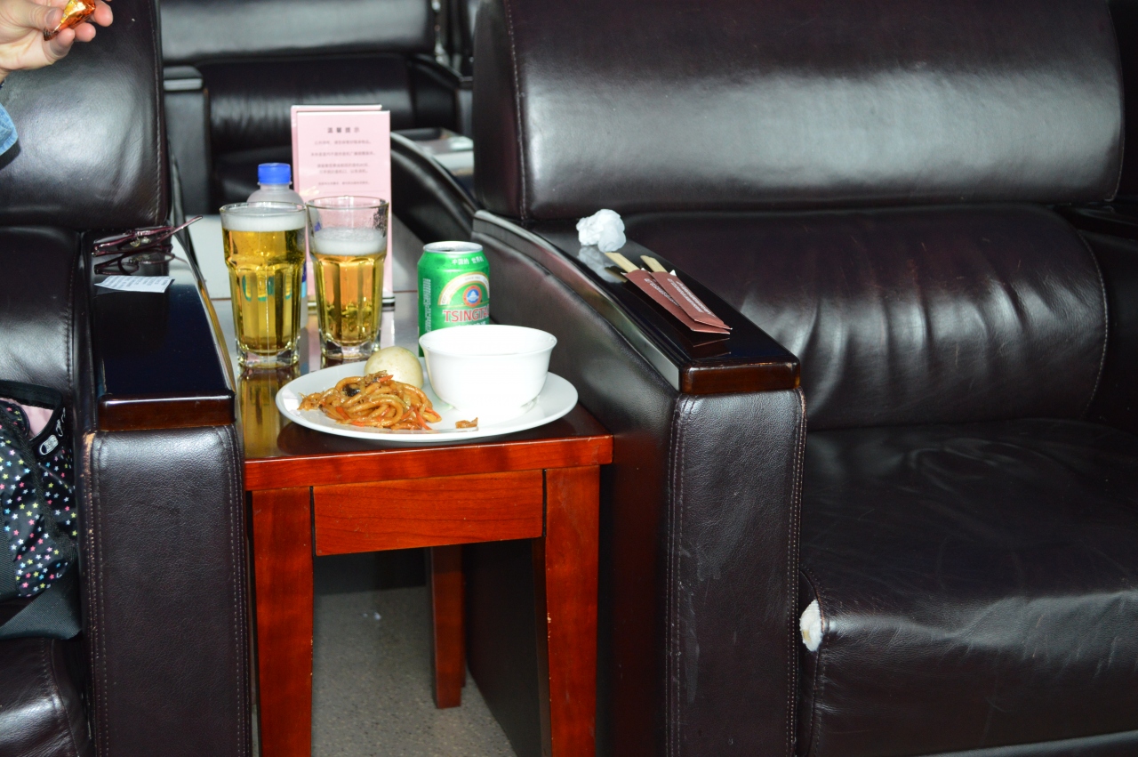 広さの割りに利用者が多く、多少の混雑感が。足を組んだ外国人の前を通る時は要注意。数種類のホットミールの他に、カップ麺やお菓子もあって、食べ物は十分です。アルコールは、提供時間の制限がある、と聞いていましたが、その時間外でも、缶の青島ビールやワインはありました。