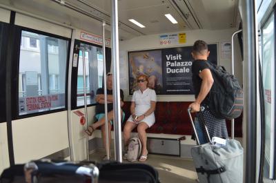 ローマ広場から2駅だけ運行する、ミニ列車?(モノレールのようですが、ケーブルカーだそう)クルーズの行き帰りに利用しました。1駅だけなので、あっと言う間に着いてしまいます。車内は一つの出入り口に、1車室というコンパクトさ。大きな荷物を持った人が多いので、やや窮屈感も。