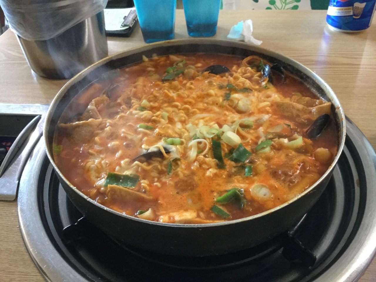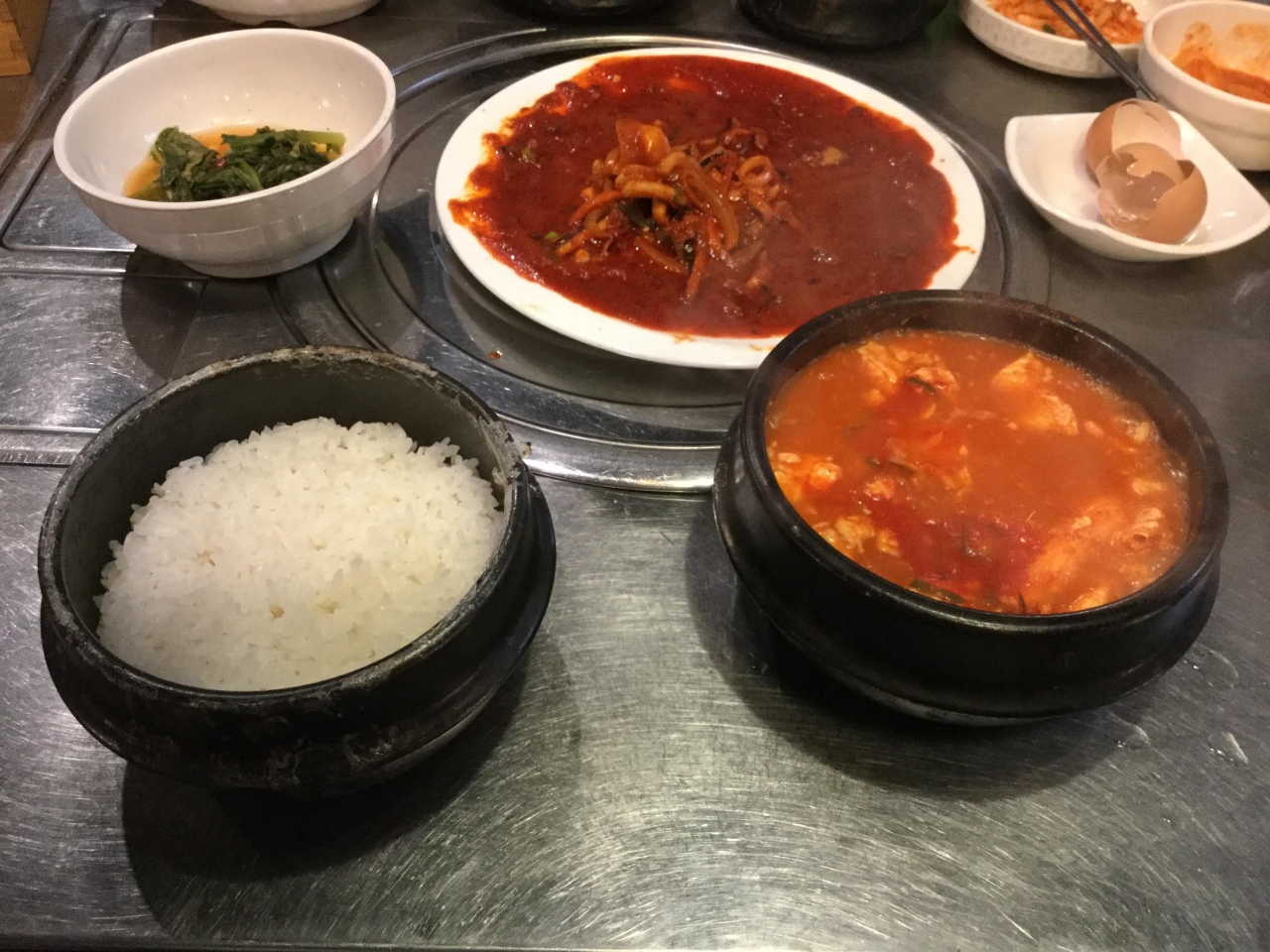 3回目です。前回食べた牡蠣入りスンドゥブが大のお気に入りとなったのですが、6月ではやはりなくて今回は、海鮮を注文しました。牡蠣入りには少し劣るものの、十分な美味しさでした。ランチにはないイカ炒めを頼み、ビール3本飲んでも、2人で5,000円しない安さ。次もまた必ず行く事になると思います。