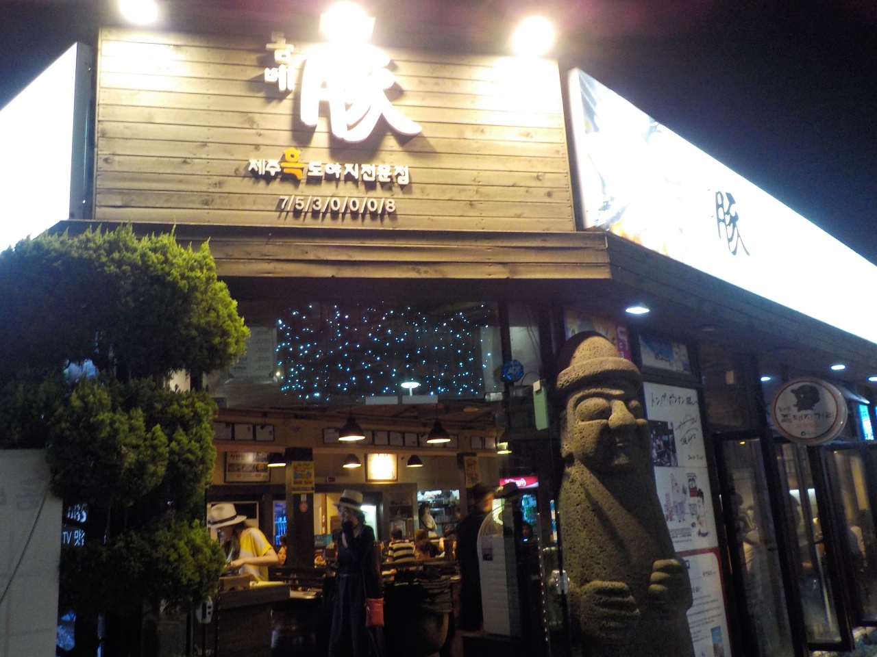 チェジュ特産の黒豚をとても美味しくいただきました。実はサムギョプサル等豚肉はあまり好物ではないのですが、こちらはこれまでで一番の美味しさでした。