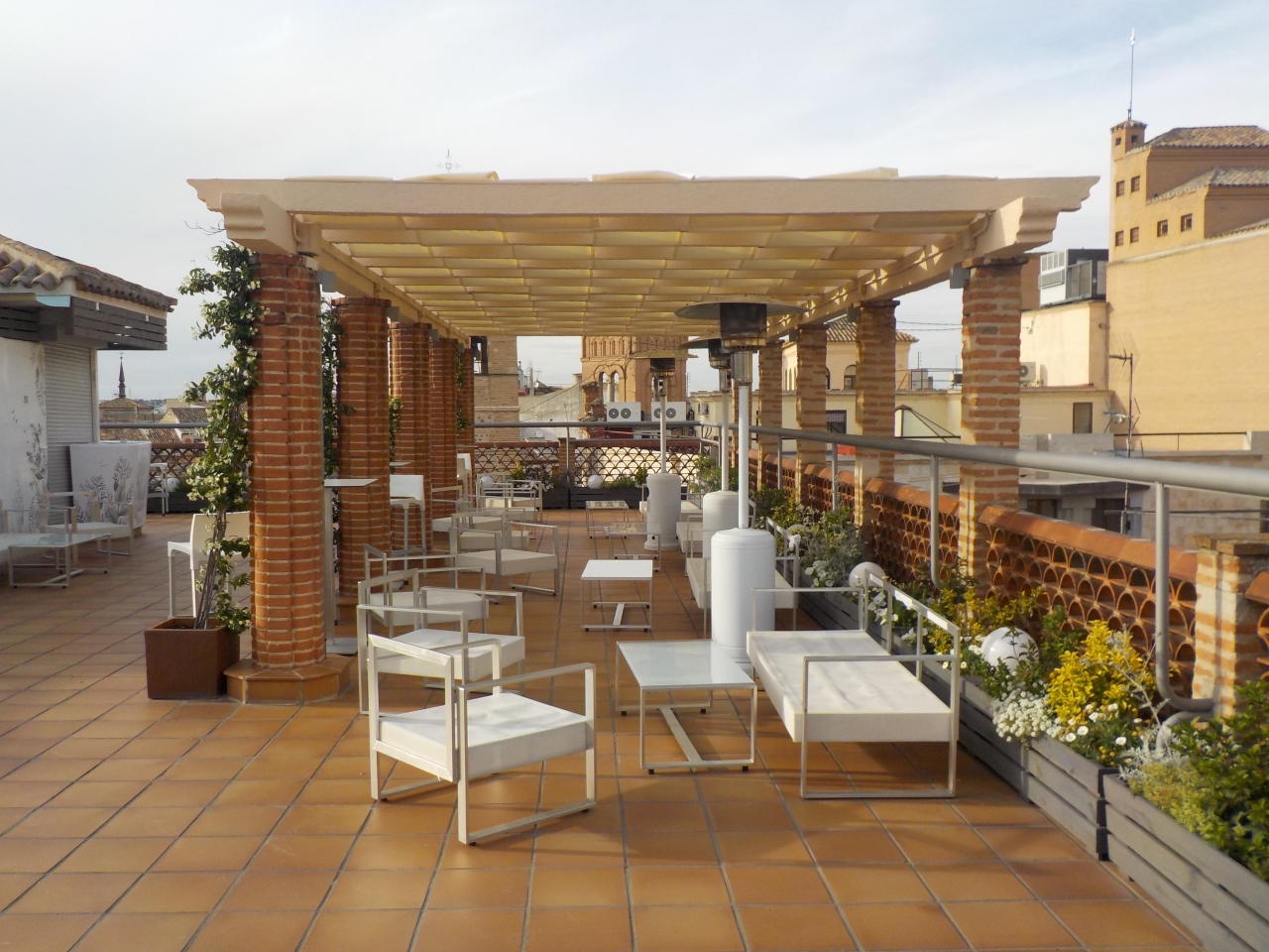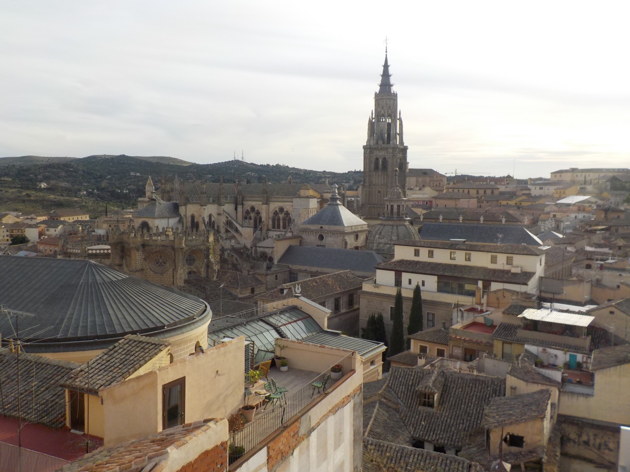 こちらのホテルの一番の売りは、屋上テラスかと思います。エレベーターで最上階に上がると建物の全面を使った広々としたテラスに出ることが出来ます。カテドラルもまじかに見え、旧市街の様子、そして遠景。古都トレドの雰囲気を存分に味わえます。