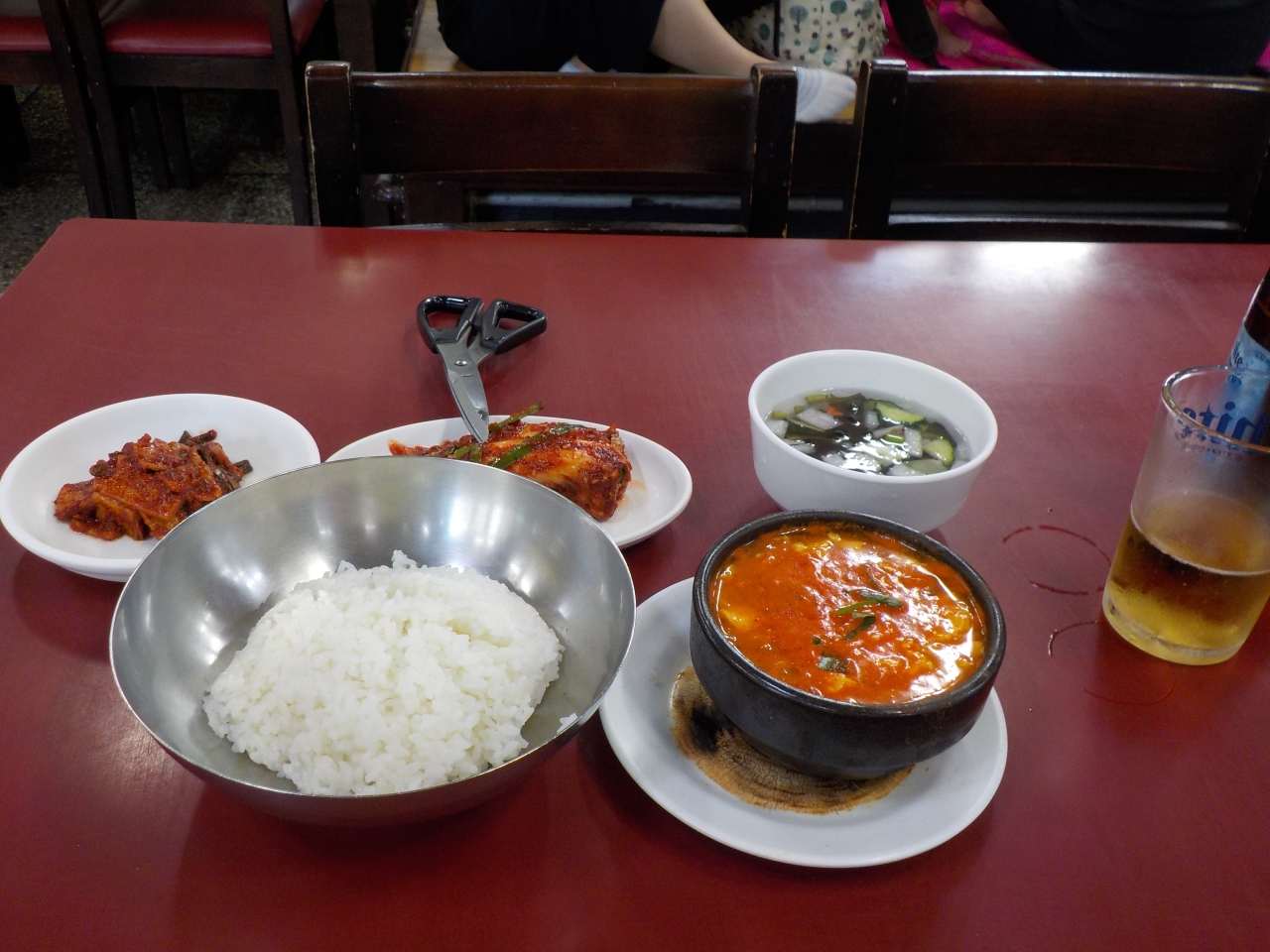 少し小腹が空いた時に、ビールとチゲと、それから美味しいキムチで休憩方々頂くにはそれでも十分です。4時ごろ行きましたが、その時間でも結構混んでいました。- 旅行時期