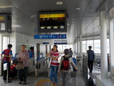 機張市場に行くのに、2016年末に広域電鉄東海線というのが開業しており、今回それを利用して行ってみました。釜田駅の向かって左手にホームが新設されていて、機張までは35分程度。車両は勿論新しくて快適、従来の東海南部線と組み合わせると、待ち時間もかなり短縮されて、利便性が大きく上がりました。