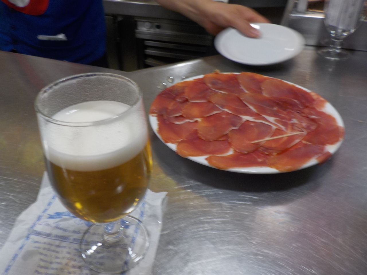 一番初めに、2品+ビールで3.99ユーロ、という安さに驚き、その後ワインを何杯かお代わりして、生ハムを追加して、それでも合計3000円程度。旨さと安さに感動。