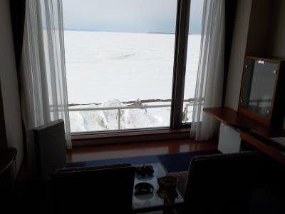 湖に面した大きな窓から眺めるサロマ湖が雄大。窓の方に向けて設置した座椅子に座って何時間でも眺めていたい、と思わせられる光景でした。