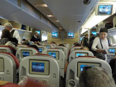格安のせいか、往きは9割程度、帰りは満席で、乗務員の方々も予想より活き活きした印象。人気のイタリア、このまま頑張って飛び続けてね!!- 旅行時期