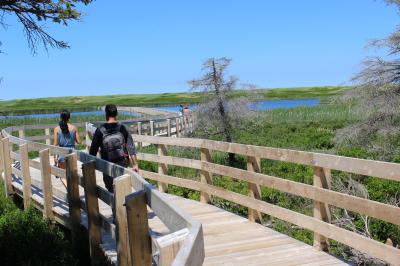 長いボードウォークのトレイルが森林、Duneの見える湿地帯を通り抜けて、ビーチまで続いていて、そこまでの池の上は浮き橋になっているので、水面を歩いているかのような感じで楽しかったです。