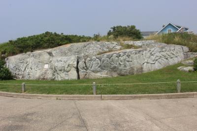 William deGartheのギャラリーが、Peggy's Coveの漁村にあるのですが、彼は、人生の大部分をノバスコシア州のPeggy's Coveで過ごしたという、フィンランド生まれの画家兼彫刻家で、そんな彼の大作、花崗岩上に刻まれた彫刻が村のPeggy's Point Lighthouseに行く途中の道沿いにあります。