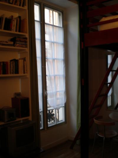 写真のアパートメントは、サンジェルマン・デ・プレのスタデイオで、10日間で442€(二人までOk)です。部屋から、(顔を出せば)セーヌ河も見えましたよ♪