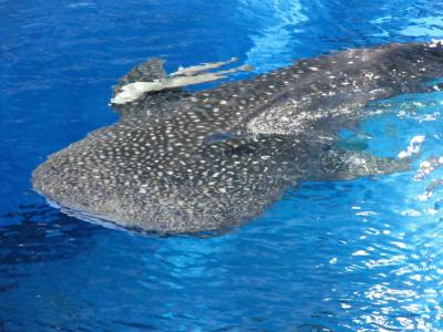 水槽の上からじんべいざめを見ることができました。