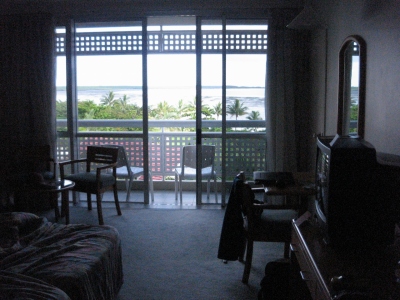 一方客室は広さ、清潔さともに申し分ない。高い建物に囲まれてホテルしか見えないが、ベランダもある。その他、施設にセーフティボックス(1日2$)、自由に使える空冷蔵庫、有料TV(映画、ゲーム、アダルト。11$~)。