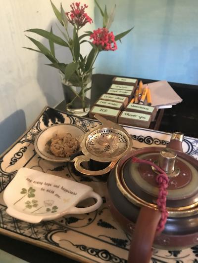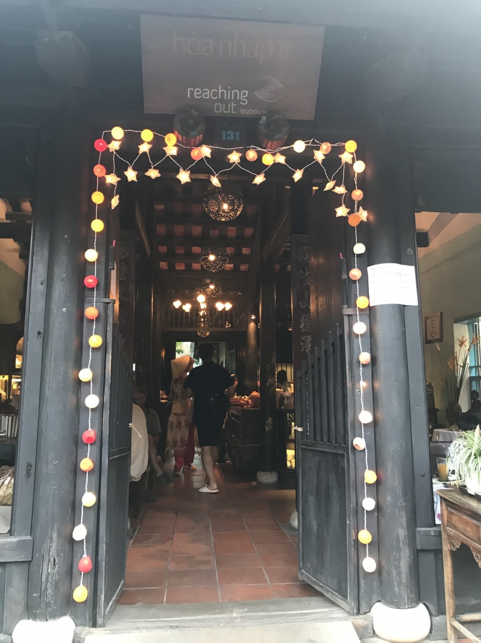 お昼過ぎのおやつタイムに訪問。小上がりになってる個室に通されました。子連れにはなんと嬉しいことでしょう!!積み木やぬいぐるみも置いてありました。注文は記入して渡し、あとはジェスチャーとあらかじめ置いてある定型文の積み木を見せるだけで通じます。ベトナムコーヒー、ジャスミン茶、オレンジジュースを注文。それぞれお菓子がついており、それもまた嬉しい。お茶は香り高く美味しかったですがのんびりしすぎて最後の方は少し苦味がありました。お喋りしてる人がほとんどおらずお店の外の喧騒が時々聞こえてくる程度。値段は全部で20万ドン弱でお値段以上、とっても贅沢な時間を過ごせました。