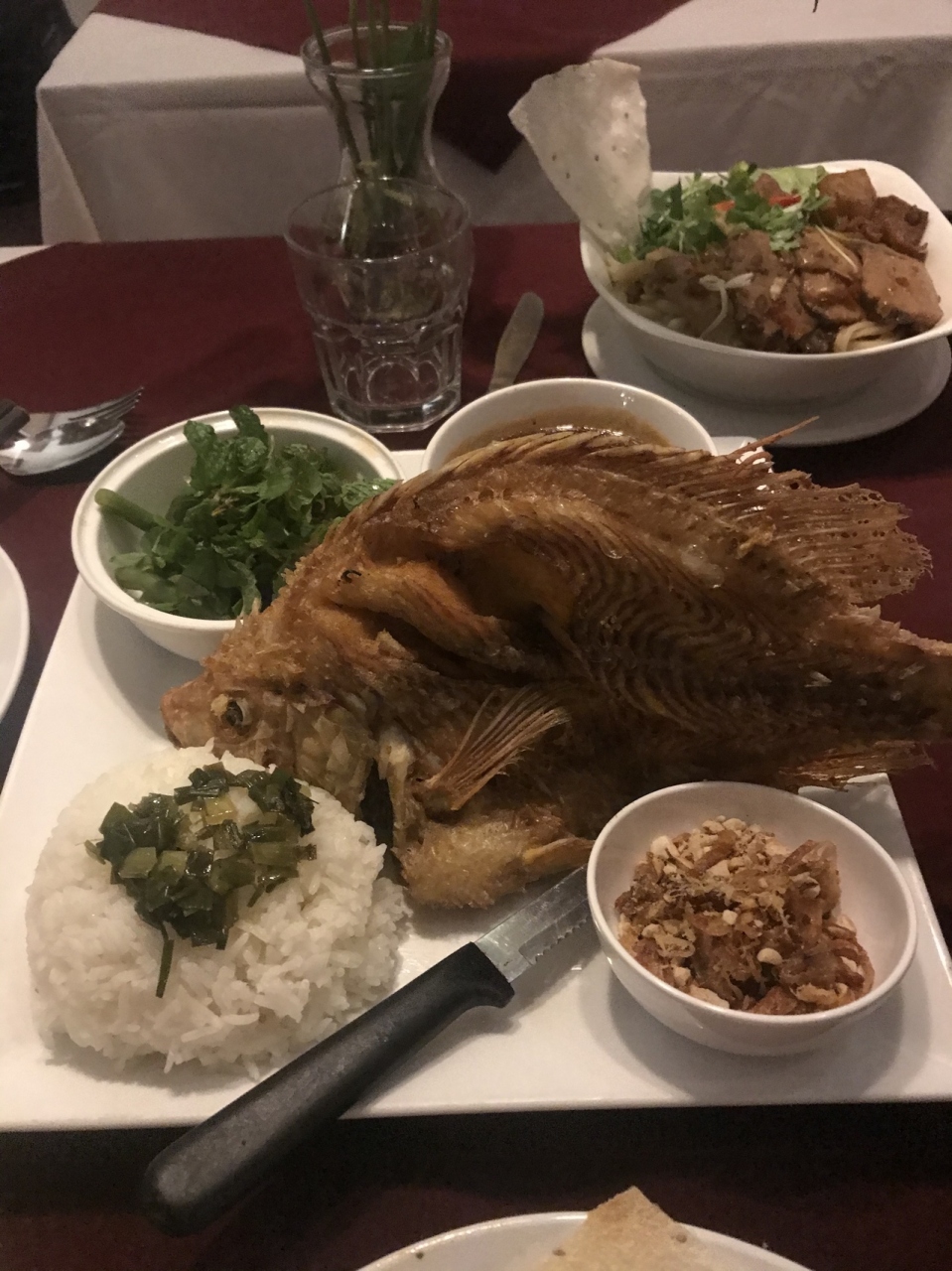 サイトからメールで予約して訪問。すぐに案内されました。人気のホワイトローズ、フライドワンタン、モーニンググローリーとカオマンガイ、貝のレモングラススープ、デザートにプリンとアイス、コーヒーを頼みました。頼んですぐに出てきます。(おそらく人気メニューは作り置き?だと思います)どれも美味しい。想像を超えてくるものはありませんでしたが、人気に納得です。ビール三本とワイン二杯もあわせて98万ドンでお値段にも満足でした。
