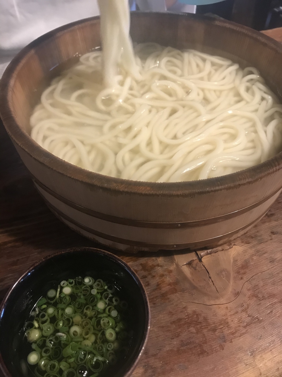 朝9時過ぎに訪問。うどん1食目です。名物釜揚げうどんを注文。茹でるのに結構時間がかかってましたが、その間に生姜をすり下ろして、熱々お出汁をチョコに入れて準備万端!お出汁がほのかにいりこの香りがして上品です。うどんも熱々ですがこしがちゃんとあって美味しい!1人で3人前食べてる人もいましたが、食べれそう!朝ごはんにぴったり。身体があったまりました。お店の雰囲気もあっていい感じです。