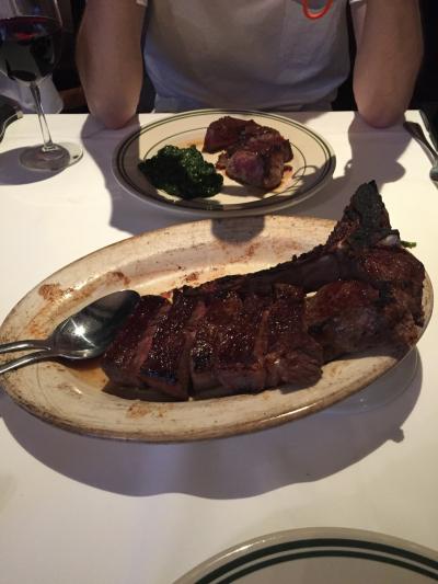 HISの現地支店でディナーの席だけ予約をとってもらい行きました。本当はハッピーアワーでお安く食べたかったのですが、予約が出来ないのと並ばないと無理!と言われたので。。。2人で、前菜に大好きな生ガキで腹ごなしをして(普通に美味しいけど、身が小さかった)メインのポーターステーキ!お肉の味が濃くて、お肉を食べてるね~!と何度かも言い合いながら食べました。赤ワインが最高に合いましたよ☆付け合わせはオススメのほうれん草のクリーム煮?みたいなやつを食べましたが、量が多過ぎてこちらは少し残してしまいました。ドリンク2杯ずつとお料理、チップで230ドルぐらいだったと思います。日本にもお店があるみたいなので、贅沢してもいい日にまた行ってみたいです。