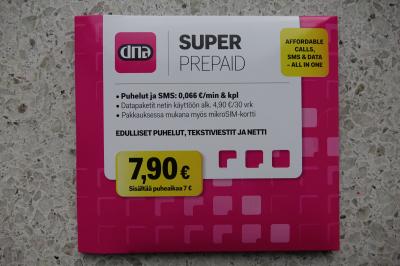 価格は4.9ユーロで4ユーロ分のデータ通信料がチャージされています。このSIMでは、データ量無制限のデータ通信が一日1.92ユーロで利用できるので、音声通話など利用しなければ、4ユーロ分だけで2日間データ通信が使い放題できる事になります。残高が無くなればR-Kioskiに行って再チャージしてもらうことができます。その場合は電話番号が必要になるので予め控えておいてください。またネットでも再チャージできますがフィンランド語のみの対応になるようです。