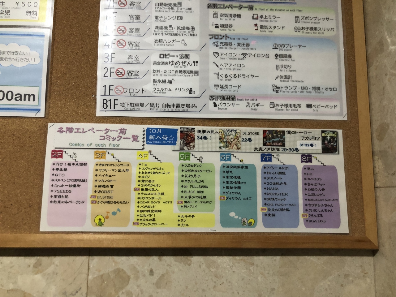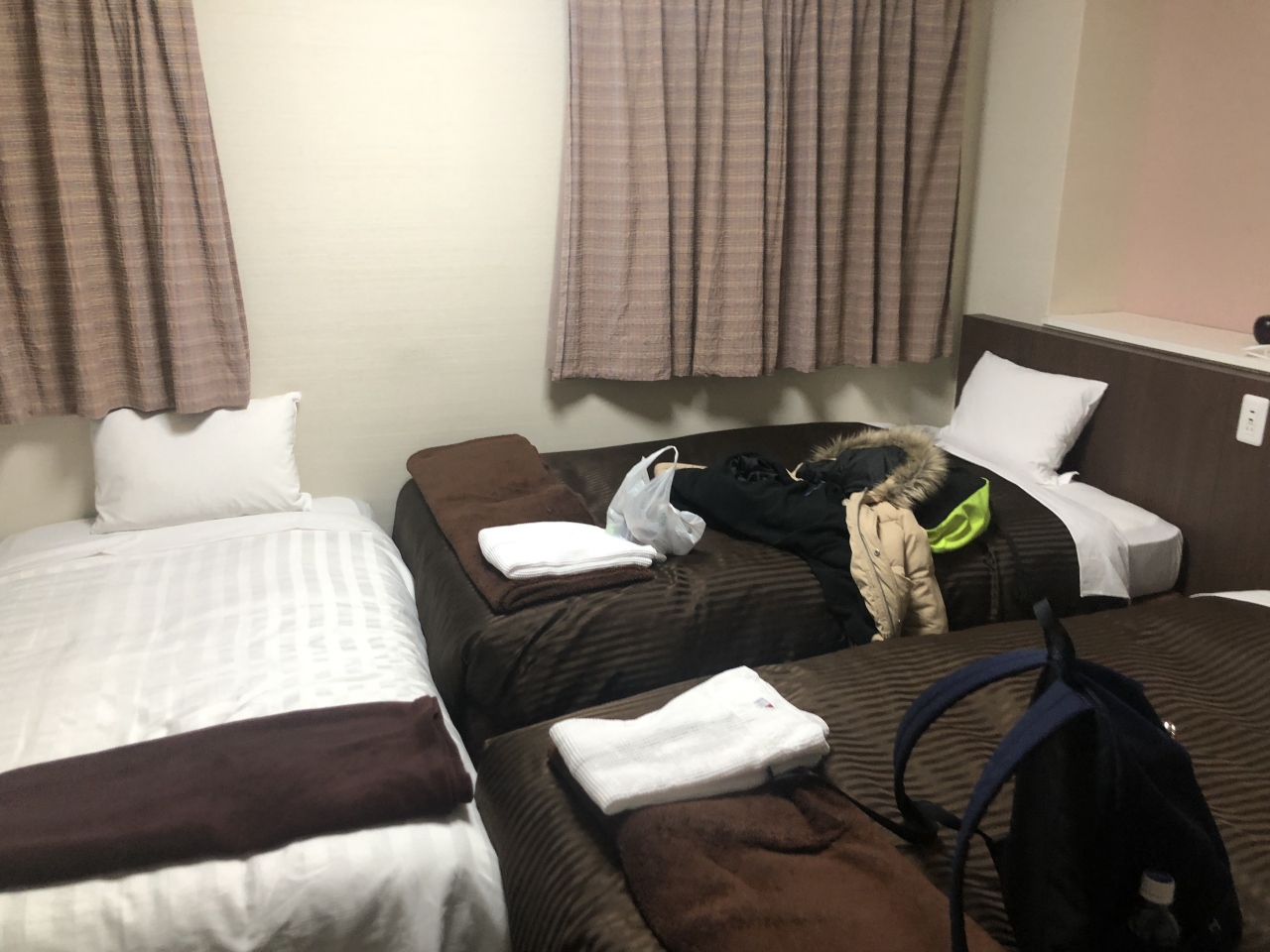 部屋は古いビジホという感じですが、アメニティバーがあったり、ランドリーが無料だったり、漫画が充実していたりと意外と家族旅行で泊まっても良かったです。