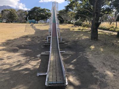 公園はとても広く、恐竜のモニュメントが点在し、恐竜モチーフの遊具もあり、子どもは喜んで遊んでいました。大きい子向け遊具もあるので、小学校高学年でも遊べます。
