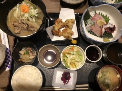 ビジネスホテル1階の居酒屋です。2食付きプランで予約したので既にメニューは決まっていましたが、普通に居酒屋としても使えると思います。