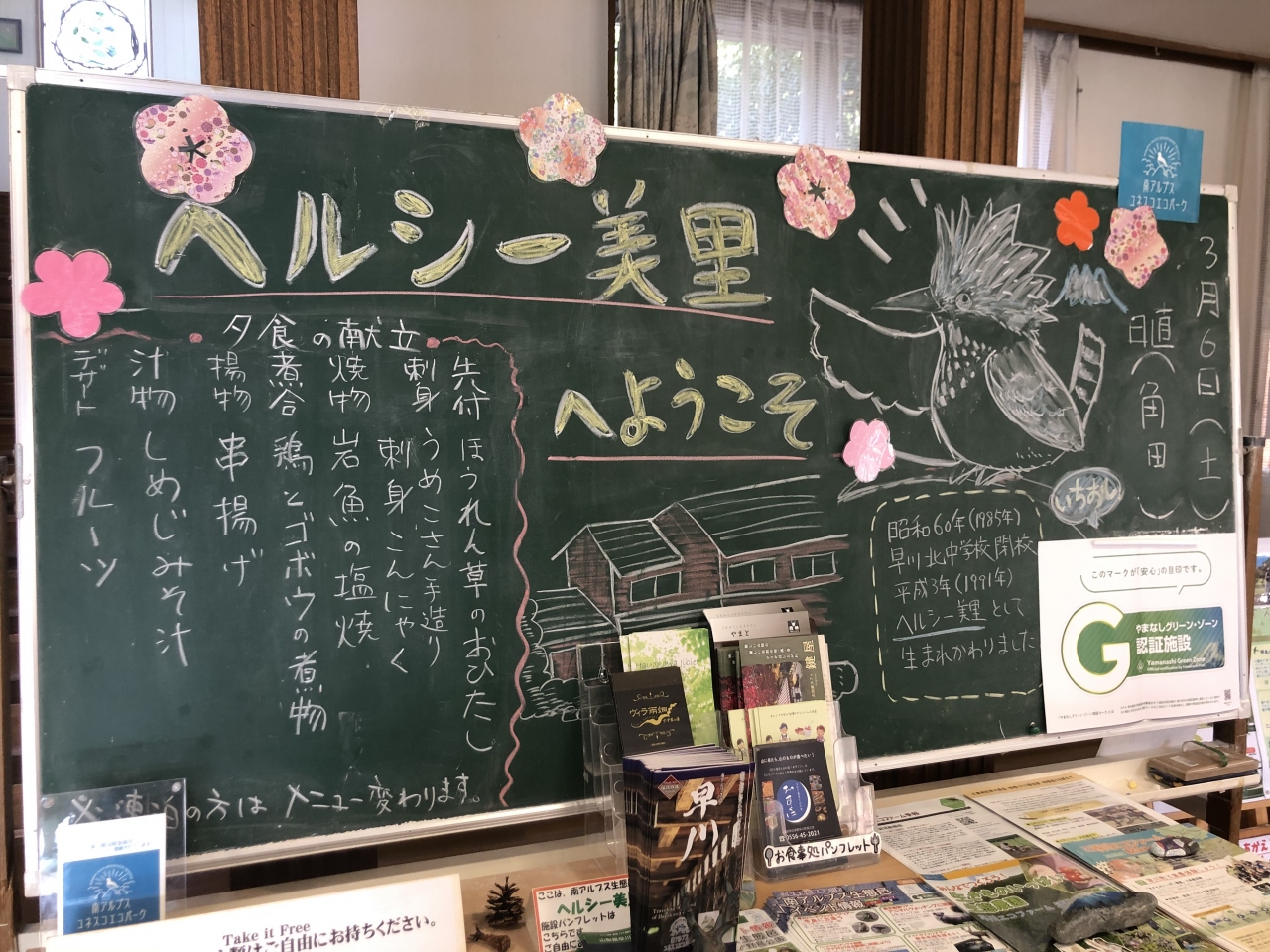 玄関の大きな黒板や、「◯年◯組」と書かれた客室が学校っぽさを感じさせます。