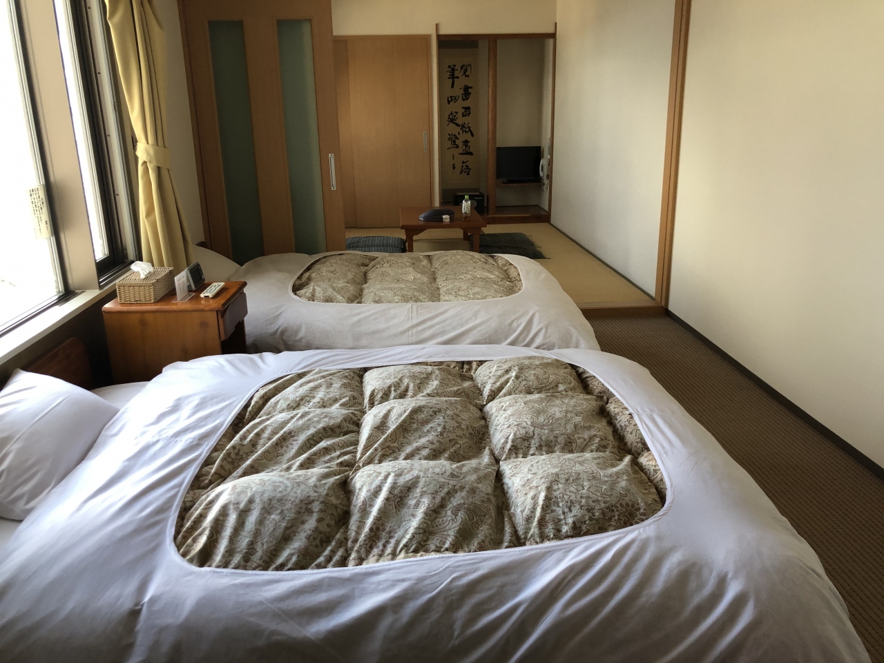 セミダブルベッド2台に畳6畳の和洋室で、5人家族でも余裕の広さでした。