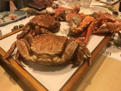 食事は一番安いコースでしたが、夕食はひとり1杯カニがつきます。カニ以外は和風会席ですが、どちらかというとお酒のつまみのようなメニューで、子供が食べられるものが少なかったのが残念でした。