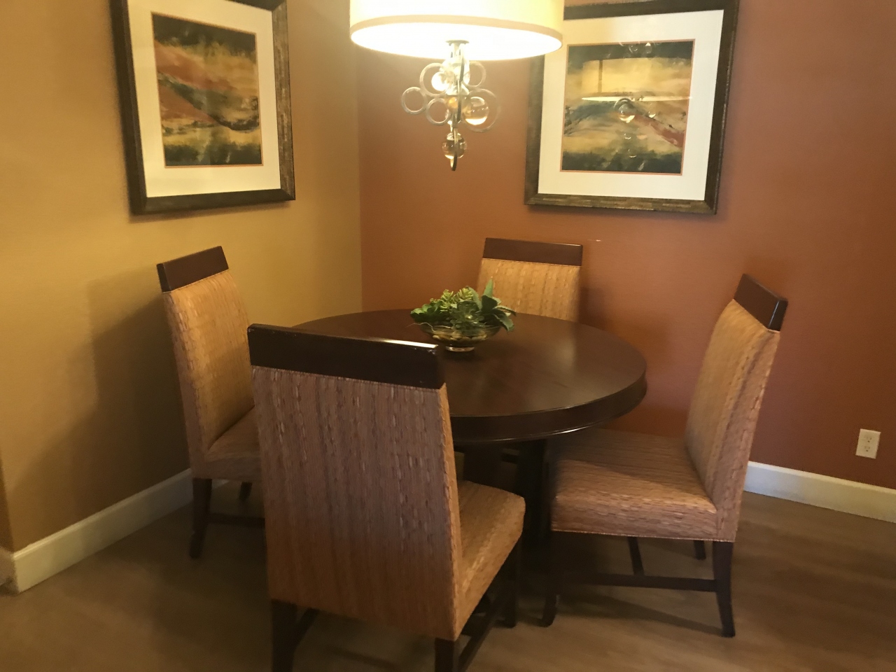 スイートタイプの客室はリビングダイニング、フルキッチンありでとにかく広い。食器や調理器具も揃っている。