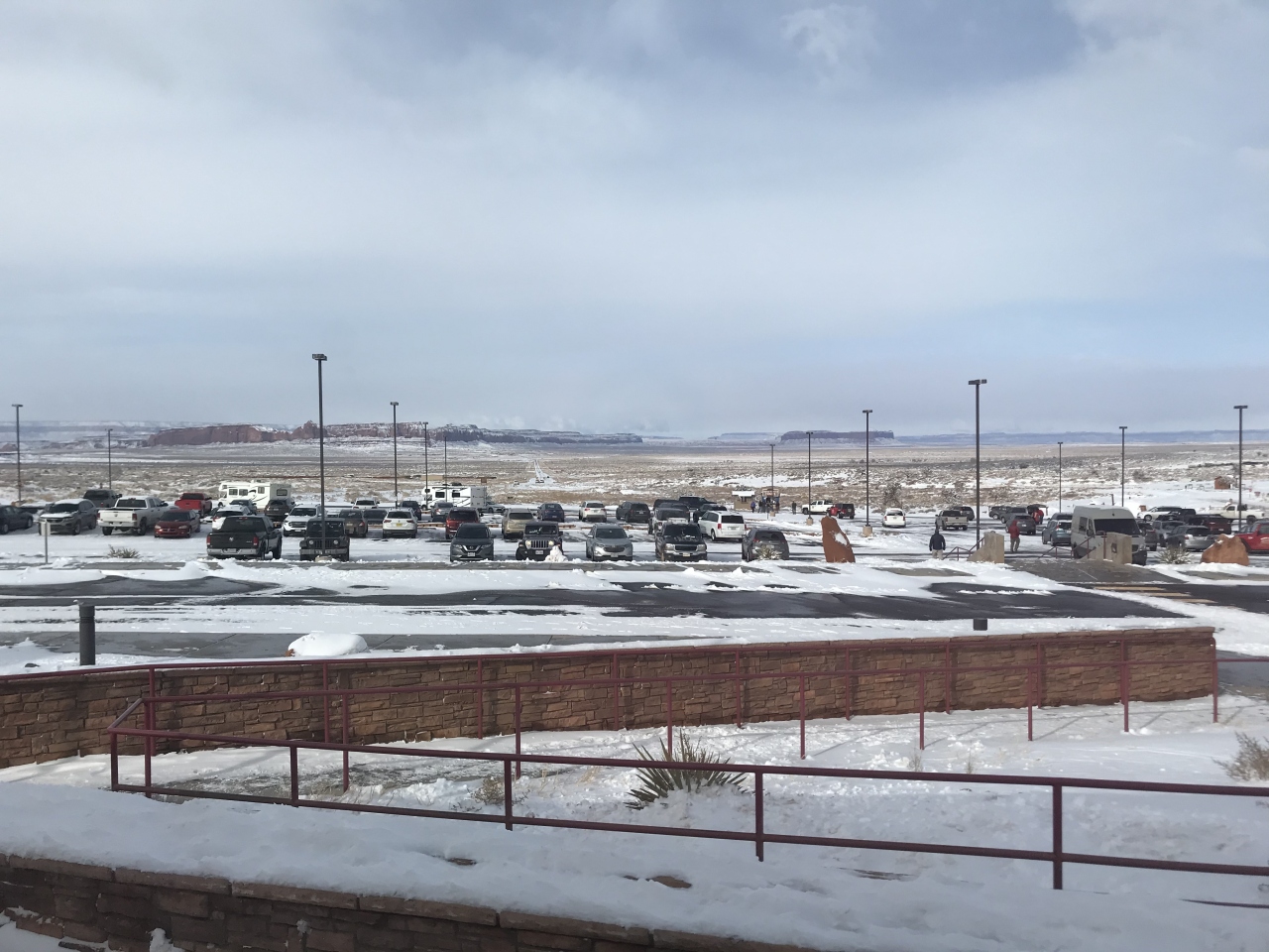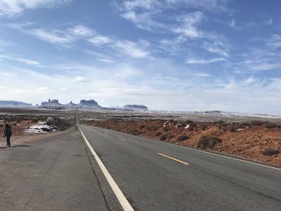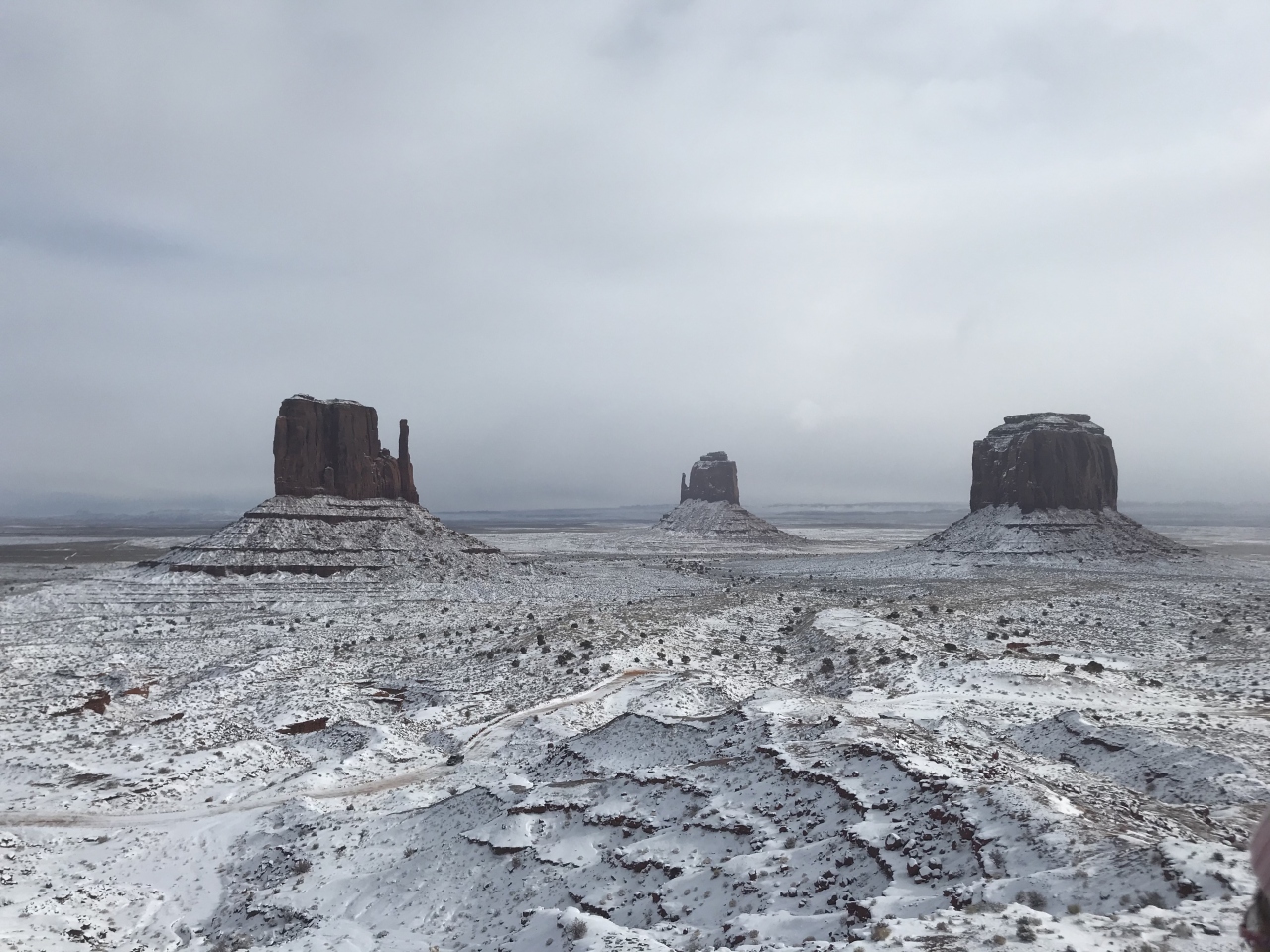 年中晴れているイメージのもニュメントバレーですが、冬は運が悪いと雪が降ります。