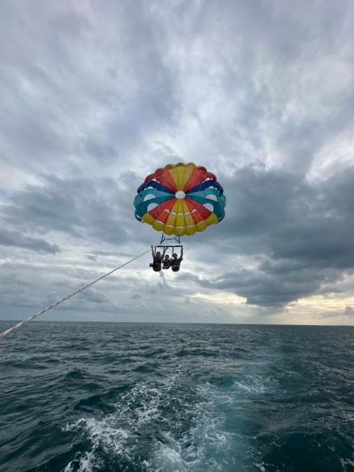 マックスバリュで時間を潰して、その後パラセーリングの集合場所へ。前日夕...