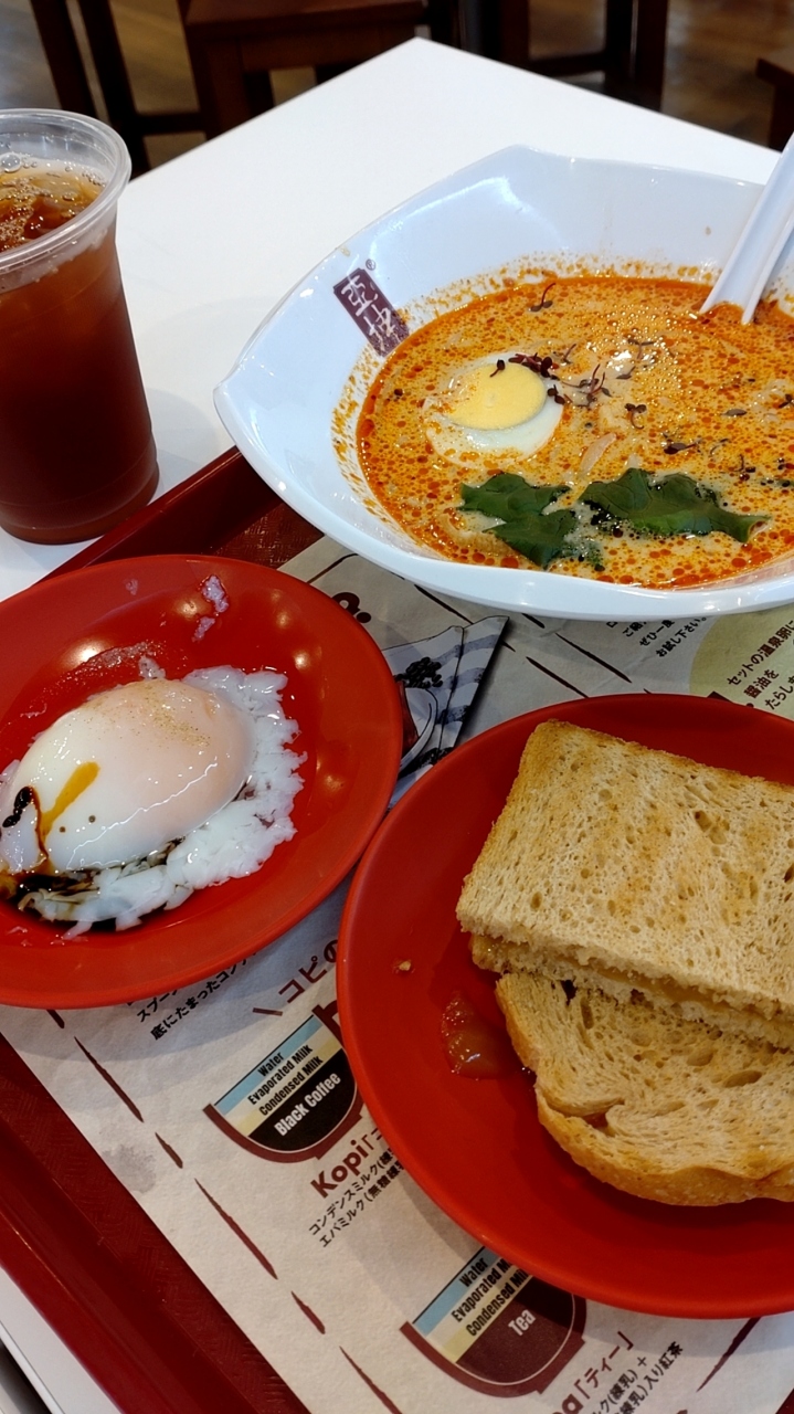 正確にはラクサのセットはないので、ハーフサイズのラクサプラス、ハーフサイズのカヤトーストセット(ドリンク付き)を注文しました。