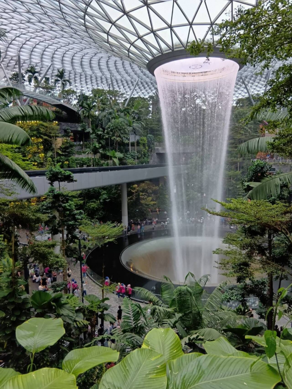 巨大な滝が流れる空港内の商業施設です。